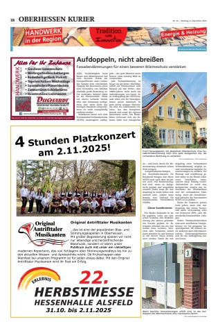 Aufdoppeln, nicht abrei%u00dfenFassadend%u00e4mmungen f%u00fcr einen besseren W%u00e4rmeschutz verst%u00e4rken(DJD). Nachhaltigkeit beimBauen und Modernisieren hatviele Facetten. Neben derEnergieeffizienz eines Geb%u00e4udes kommt dem schonendenUmgang mit Ressourcen sowiedem Vermeiden von Abf%u00e4llenebenfalls gro%u00dfe Bedeutung zu.Ein treffendes Beispiel daf%u00fcrist der W%u00e4rmeschutz: Wennein %u00e4lteres Geb%u00e4ude bereits%u00fcber eine D%u00e4mmung verf%u00fcgt,diese aber nicht mehr denheutigen Standards entspricht,muss sie nicht zwangsl%u00e4ufigentfernt werden.Stattdessen lassen sich vieleW%u00e4rmed%u00e4mm-Verbundsysteme(WDVS) nachtr%u00e4glich aufdoppeln %u2013 das spart Material sowieKosten, ohne unn%u00f6tig M%u00fcll zuverursachen.Jede W%u00e4rmed%u00e4mmung istbesser als gar keine. Allerdingserf%u00fcllt ein W%u00e4rmeschutz zumBeispiel aus den 1970er- oder1980er-Jahren nicht mehr dieAnforderungen von heute. Eine Aufdopplung der WDVS-Fassade lohnt sich f%u00fcr Hauseigent%u00fcmer gleich mehrfach: Esgeht (noch) weniger Heizw%u00e4rme %u00fcber die Au%u00dfenw%u00e4nde verloren, was den Energieverbrauch und somit die eigenenEmissionen senkt. Das Raumklima verbessert sich, das Zuhause f%u00fchlt sich behaglicheran %u2013 und kann durch die Modernisierung obendrein seinenWert steigern.%u00bbLangzeituntersuchungendes Fraunhofer-Instituts f%u00fcrBauphysik belegen, dass %u00e4ltereWDVS auch nach %u00fcber 40 Jahren noch voll funktionstauglich sind, wenn sie fachgerecht geplant und ausgef%u00fchrtwurden. Daher kann die Aufdopplung in vielen F%u00e4llen sehrsinnvoll sein%u00ab, erkl%u00e4rt AntjeHannig vom Verband f%u00fcrD%u00e4mmsysteme, Putz&M%u00f6rtel(VDPM).Clever kombinierenEin idealer Zeitpunkt ist daf%u00fcr gegeben, wenn aus optischen Gr%u00fcnden eine Modernisierung der %u00e4lteren ged%u00e4mmten Fassade geplant ist. Bestimmte Arbeiten wie das Aufstellen eines Ger%u00fcstes, Streichen oder Verputzen stehendann ohnehin an und k%u00f6nnenso auf clevere Weise kombiniert werden. Damit die Aufdopplung einer vorhandenenW%u00e4rmed%u00e4mmung m%u00f6glich ist,sind verschiedene bauliche Voraussetzungen zu erf%u00fcllen. DiePlanung und Ausf%u00fchrung geh%u00f6rt daher in die H%u00e4nde erfahrener Verarbeiter, unterstreicht Antje Hannig weiter:%u00bbErforderlich ist vorab einefachgerechte Analyse des IstZustandes des Wandaufbausund der vorhandenen D%u00e4mmung. Auch die Standsicherheit inklusive des bestehendenWDVS ist zu pr%u00fcfen.%u00abWenn die Experten gr%u00fcnesLicht geben, kann eine Aufdopplung mit einem Neusystem unter Verwendung etwavon Polystyrol (EPS)- oder Mineralwolle-D%u00e4mmstoffen erfolgen.Neben Handwerksbetriebensind auch zertifizierte Energieberater vor Ort geeignete Ansprechpartner. Sie k%u00f6nnen unter anderem dazu informieren,welche F%u00f6rderm%u00f6glichkeitensich f%u00fcr die Aufdopplung nutzen lassen.Wenn bauliche Voraussetzungen erf%u00fcllt sind, ist das Aufdoppeln des W%u00e4rmeschutzes eine interessante Option.FOTO: DJD/VDPM/CHRISTIAN G%u00dcNTHERFrisch herausgeputzt, mit doppeltem W%u00e4rmeschutz: Eine Fassadenmodernisierung stellt eine gute Gelegenheit dar, dievorhandene D%u00e4mmung zu verst%u00e4rken.FOTO: DJD/VDPM/FINECKI%u2013STOCK.ADOBE.COM22.31.10. bis 2.11.20254 Stunden Platzkonzert am 2.11.2025! Original Antrifttaler Musikanten %u2026das ist eine der popul%u00e4rsten Blas- und Stimmungskapellen in Oberhes sen. Mit gro%u00dfer Begeisterung spielen wir nicht nur lebendige und herzerfrischende Blasmusik, sondern er obern unser P Publikum ublikum auch mit unser mit unser em viels em vielseitigen eitigen modernen Repertoire, das von Schlagern %u00fcber Stimmungsmedleys bis hin zu den aktuellen Wiesen- und Apr%u00e9sskihits reicht. Ob Fr%u00fchschoppen oderWeinfest bei unserem Programm ist f%u00fcr jeden etwas dabei. Mit den Original Antrifttaler Musikanten wird ihr Fest ein Erfolg.Energie & HeizungHANDWERKFAXAlles f%u00fcr Ihr ZuhauseMo. bis Fr.: 9.00 bis 18.00 Uhr, Sa. 9.00 bis 14.00 Uhr durchgehend ge%u00f6ffnet.www.duchardt-raumausstattung.de36304 Alsfeld %u2022 HersfelderStra%u00dfe 77PRIVAT %u2013 GEWERBE %u2013 OBJEKT%u2013PRAXIS%u2022 Gardinen/Sonnenschutz%u2022 Wintergartenbeschattungen%u2022 Bodenbel%u00e4ge/Kork/Parkett%u2022 Tapeten/Farben/Mischanlage%u2022 Spanndecken/Paneeldecken%u2022 Zimmert%u00fcren/Schiebet%u00fcren%u2022 Heimtextilien/Lederwaren18 OBERHESSEN KURIER Nr. 36|Samstag, 6. September 2025